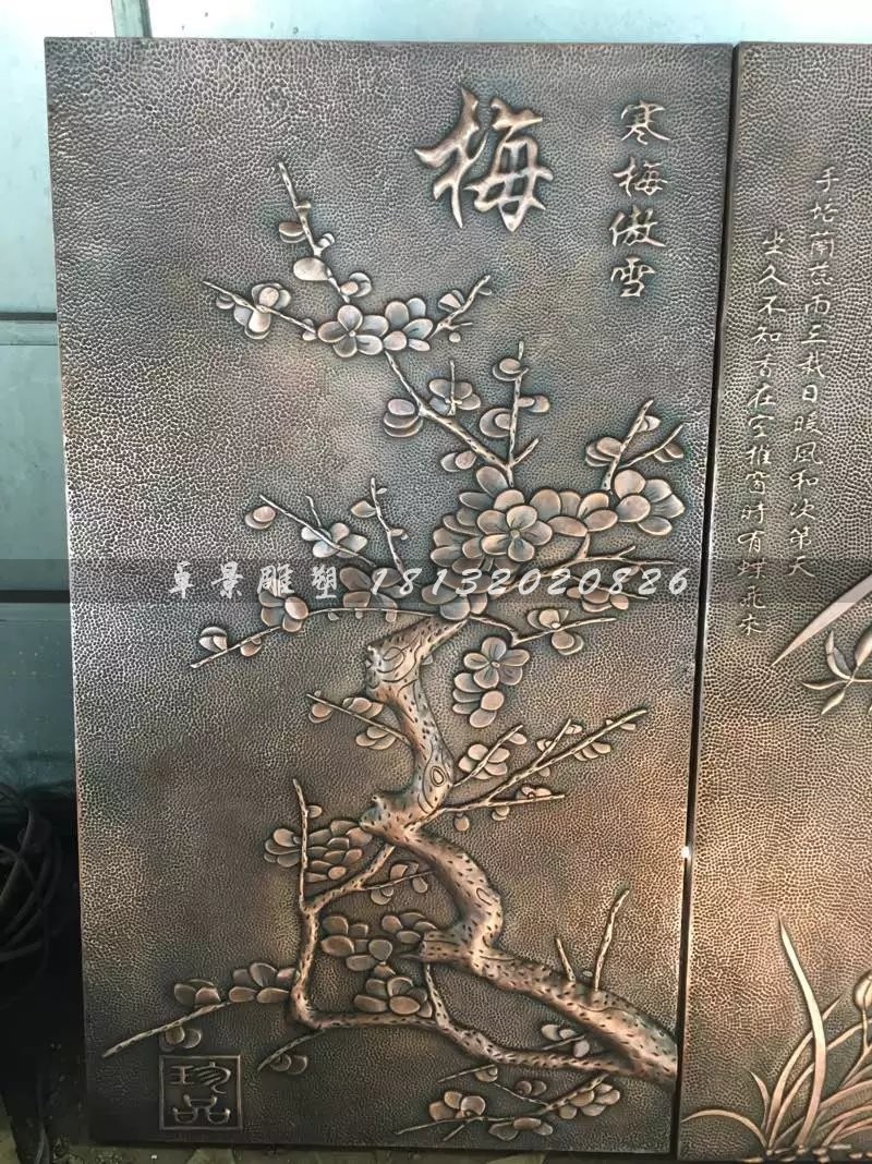 銅浮雕是中國古文明藝術,引入歐洲先進技術和技術,以不銹蝕、不脫色的優質紫銅為質料,經過多道工序精制而成,在內容和形式上與地方特色文明緊密結合,具有做工精密、形象傳神、立體感強、個性古拙、畫面繪聲繪色、可永世保藏等特色。銅浮雕選材靠近現實生活,是民間的藝術精靈,他展示著大家的思維和審美。