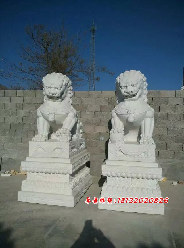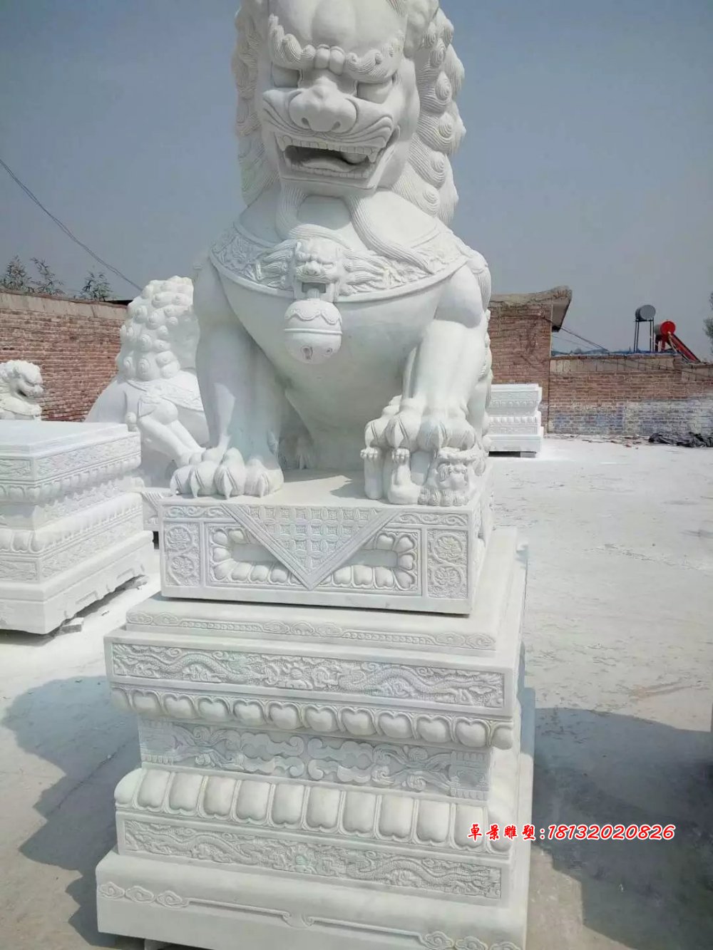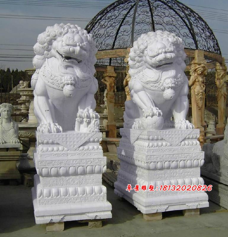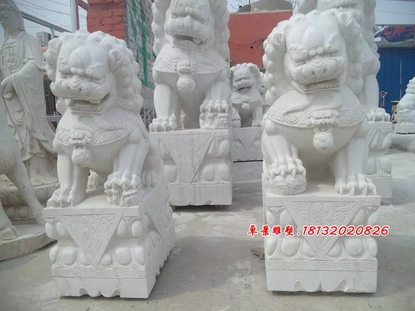 中國人歷來把石獅子視為吉祥之物。在我們生活中各種造型的石獅子隨處可見。古代的官衙廟堂、豪門巨宅大門前,都擺放一對石獅子用以鎮宅護衛,石獅子具有招財守財的作用。 石獅子一般分為中式石獅子和歐式石獅子,中式的石獅子,具有獨特的藝術風格。它們既是珍貴的歷史文物,更是寶貴的藝術珍品,反映出我國源遠流長的文化傳統和石雕藝術,值得我們觀賞和珍惜!下面卓景雕塑為大家介紹一下常見的漢白玉獅子雕塑。