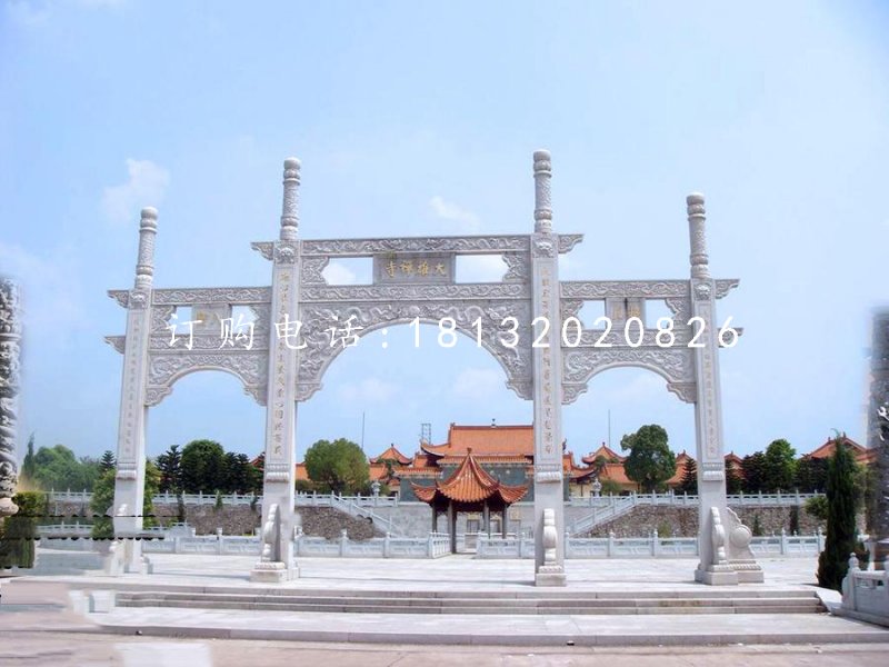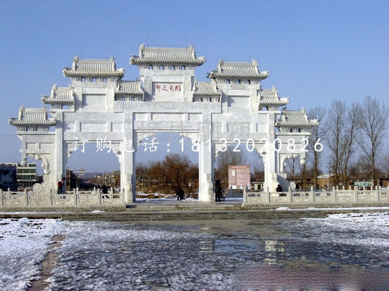 石雕牌坊是夸耀標榜。牌坊多立于人們往來必經之處和熱鬧繁華的大庭廣眾之地,這些地方 正是人們夸耀、標榜的最佳場所,同時,牌坊既能刻載文字,又形態優美,備受人們注目,因此無疑也是用以夸耀標榜的最好載體。所以,牌坊常被用來夸耀標榜功名、官爵、家世、身份、地位、功勛、門第、榮譽及所受帝王的恩寵等等。