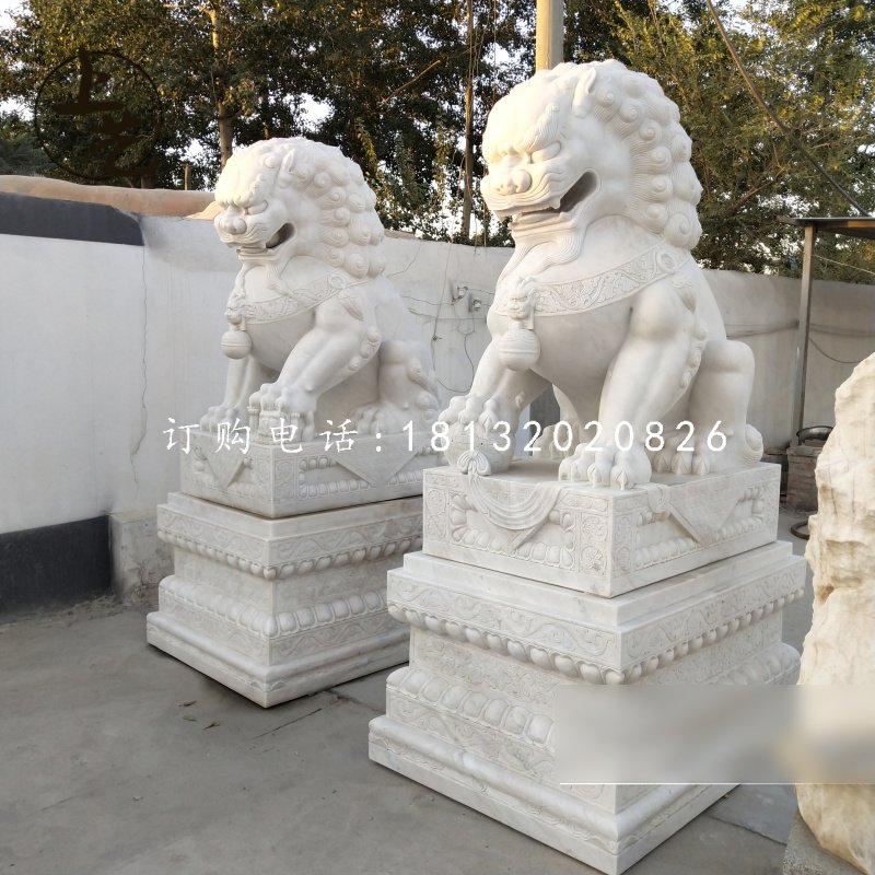 可能有人會問,為什么石獅子擺放時要擺放兩個,難道一個不行?實際上,所擺放的兩只石獅子是一公一母,成雙成對的出現,這是因為中國人向來有羨慕鴛鴦不羨仙的思想,并且人人都愛成人之美,那么誰也不忍心將原本一對的石獅子拆分開來了。公母的區分可從他們腳下踩的物品進行判別,雄獅腳下一般抓著一只繡球,而母獅子掌下則撫慰著 小獅子,如此也便有了左蹬獅子右蹬球的說法,也就是雄獅該被擺放在右邊,母獅則在左邊。