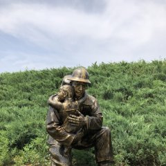 消防員抱孩子銅雕