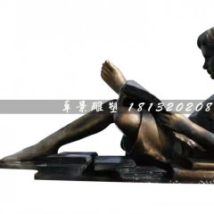 西方小孩看書雕塑,玻璃鋼仿銅人物雕塑
