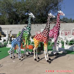 彩色長頸鹿雕塑,玻璃鋼動物