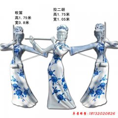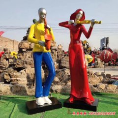 玻璃鋼拉二胡吹笛子人物雕塑