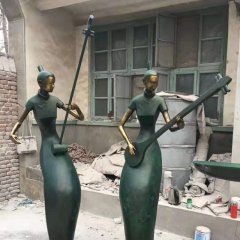 彈三弦人物銅雕