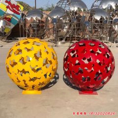 彩色不銹鋼蝴蝶鏤空球雕塑
