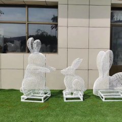 公園不銹鋼鏤空編織兔子雕塑