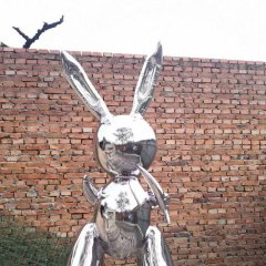 不銹鋼鏡面兔子雕塑
