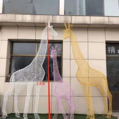 不銹鋼公園長頸鹿動物雕塑。長頸鹿是一種生長在非洲的反芻偶蹄動物,拉丁文名字的意思是“長著豹紋的駱駝”。它們是世界上現存最高的陸生動物。站立時由頭至腳可達6-8米,體重約700千克,剛出生的幼仔就有1.5米高;皮毛顏色花紋有斑點和網紋型。