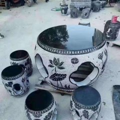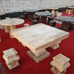 方桌石雕,長(zhǎng)凳石雕,公園石桌凳