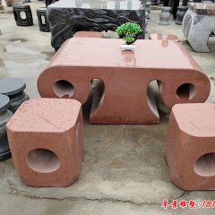 大象造型石桌凳晚霞紅石桌石凳雕塑