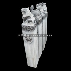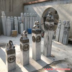 石雕拴馬樁廠家,古代石猴圖片等。拴馬樁是古代拴馬或泛指拴牲口用的石樁,一般豎立在門前,有的還置一上馬石,與樁配套使用。門前拴馬樁、上馬石,其間再站立一匹高頭大馬,格外耀眼,顯示出富貴之氣,從而成為家門貴賤、尊卑的標識。