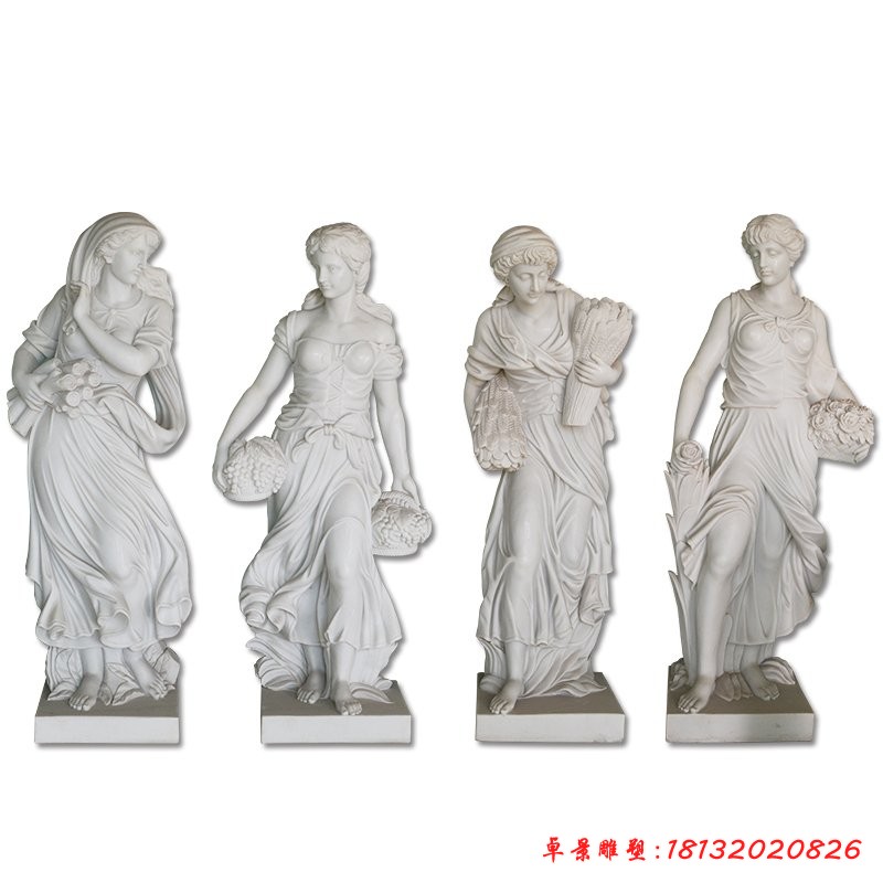 石雕西方人物女神一般都半裸或全裸的軀體,半落的衣衫,既展示了肉體的美,又有所遮蔽 ,有所節制。它讓人們注意力于人物的內在神韻,而不僅外在的肉體,這的確是高超藝術手法。西方的人物的形象,是按照人的裸體比例美學來塑造的。雖然古代人崇拜神,但由于石雕家是按照現實生活中的人體美去創造美的形象的,因而這些完美的雕像的各部分比例幾乎都蘊含著5∶8黃金分割。西方人物雕刻是非常美的。