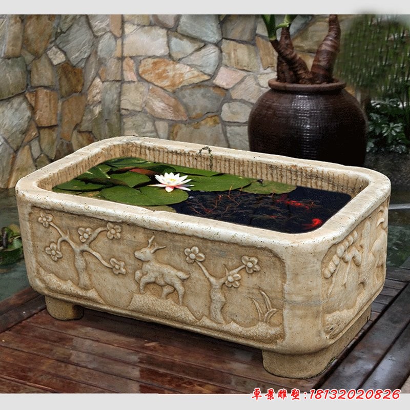 當前位置:卓景雕塑> 石雕> 園林建筑> 石雕魚缸水缸> 石雕魚缸養魚