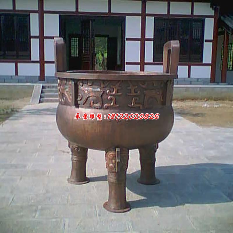 銅雕香爐,因?yàn)槭枪┓钐旖纾诎朔舛裕瑸樘欤缘男螤睿詧A為主。供奉地界的時所用的香爐,以瓷器為主,屬士,在八卦而青,屬于八卦,坤為地,形狀應(yīng)以方形為主,所以供奉祖先地主的香,應(yīng)以方形的瓷器香爐為主。中國香爐文化的歷史可以追溯到商周時代的鼎。中國古代青銅鼎有烹煮肉食、祭祀等用途,祖先傾其所有,向天祈福,求神靈祖宗保佑。