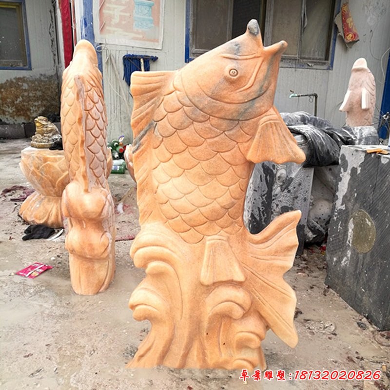 魚雕塑正是因為這個原因而廣泛的出現在人們的生活中的,人們用魚雕塑來裝飾,主要是為了祈求美好的生活,也就是俗話說的圖彩頭。魚雕塑的造型多為魚躍出水面的情態,魚頭朝上,用尾巴奮力的拍擊水面,想要向高處奮力的飛躍。這也印證了關于魚的另外一個典故,魚躍龍門。正是因為有這個傳說的存在,所以魚雕塑還蘊含著人們對于出人頭地,成就自己的事業的美好的期盼,人們渴望著想魚一樣躍過龍門,化生為龍,翱翔于九天之上。現在魚石雕又有了新的含義,就是用來祝福學子們成功的通過決定他們命運的考試,成了一種新的,表達美好祝福的送給學子的最佳之物。