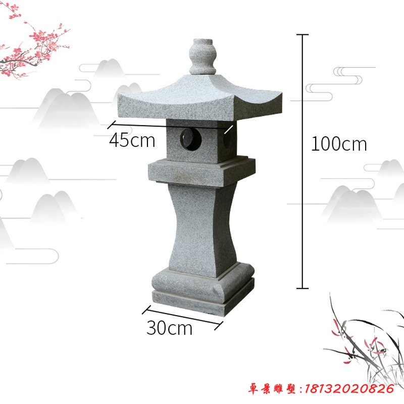 石燈最早雛形是中國(guó)供佛時(shí)點(diǎn)的燈,也就是供燈的形式。石燈被用于園林、庭院的裝飾始于十六世紀(jì)晚期的安士桃山時(shí)代,當(dāng)時(shí)由于茶道的大發(fā)展,石燈常被作為一種露天裝飾物而廣泛進(jìn)入庭院裝飾,隨著石燈用途的改變,石燈的樣式也就更加多樣化了,例如出現(xiàn)了三角或四角的雪見(jiàn)燈籠,同時(shí)對(duì)竿和笠的部分也給與新的設(shè)計(jì),石燈的樣式由模仿進(jìn)入創(chuàng)新,日本的石燈除了少量用于寺院以外,大多數(shù)的石燈是用于庭院、園林裝飾使用。