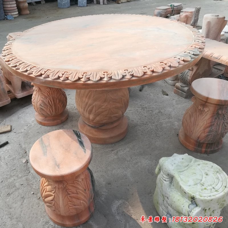 晚霞紅石桌石凳