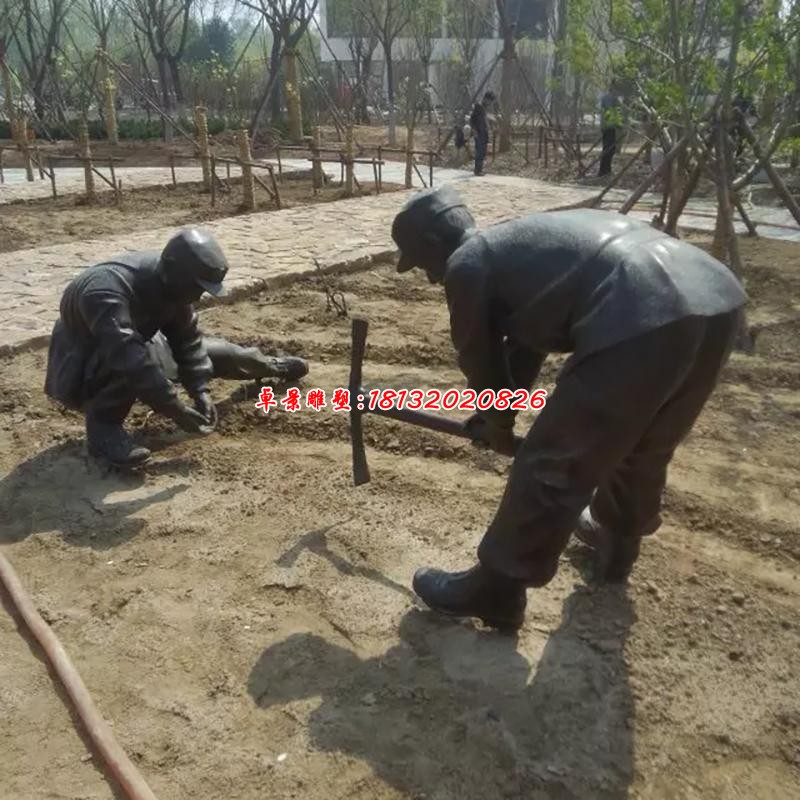 農耕童卻人物防銅塑像