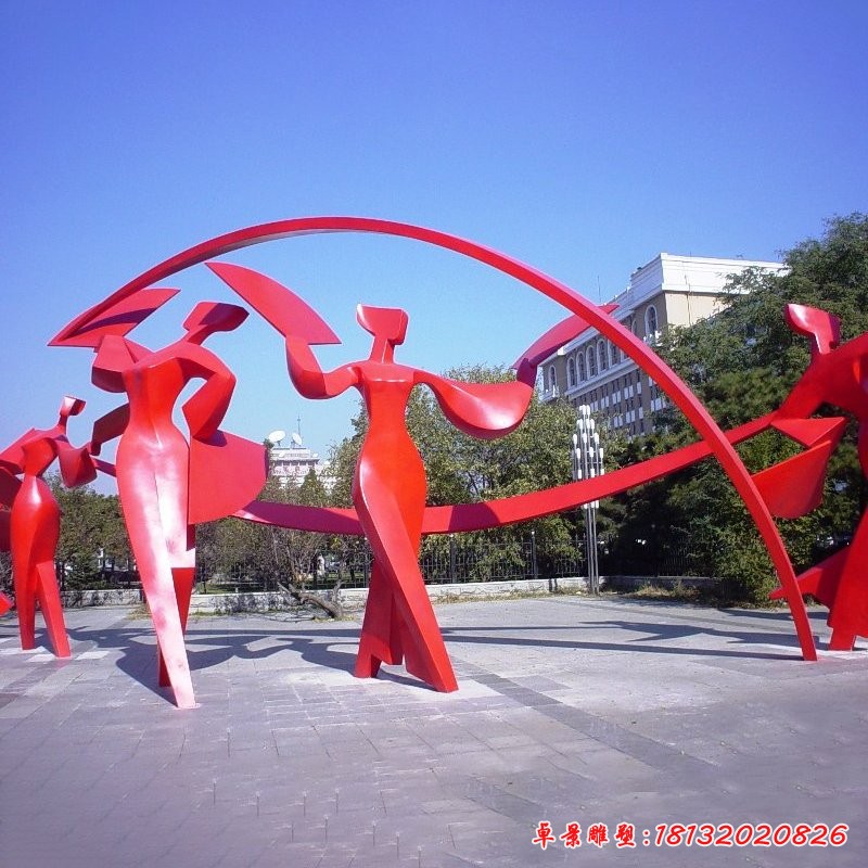 不銹鋼人物扭秧歌雕塑