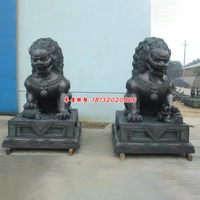 中國人歷來把銅獅子視為吉祥之物,在中國眾多的園林名勝中,各種造型的銅獅子隨處可見。古代的官衙廟堂、豪門巨宅大門前,都擺放一對銅獅子用以鎮宅護衛。直到現代,許多建筑物大門前,還有這種安放銅獅子鎮宅護院的遺風不泯。銅獅不僅有不同的時代特點,還有明顯的地域特色??傮w上,北方的銅獅子外觀大氣,雕琢質樸;南方的銅獅更為靈氣,造型活潑,雕飾繁多,小獅子也不僅在母獅手掌下,有的爬上獅背,活潑可愛。