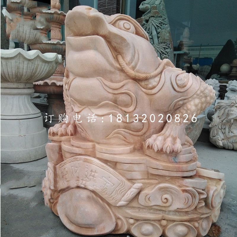 石雕金蟾都是以美好的寓意得到大眾的喜愛,金蟾形象豐滿,背負錢串,其身上嵌滿了金銀財寶,三只足下面踩著元寶,俗有招財進寶之意。另外,古代時期針對三足金蟾還有一種說法就是蟾宮折桂,所以金蟾還可以象征似錦的前程。石雕金蟾屬于招財瑞獸的代表之一,寓意著財源廣進。古老的傳說金蟾曾經一度為禍人間,最終被道士劉海用計收服,后來民間便有劉海戲金蟾,步步釣金錢的說法。招財金蟾的造型通常都與元寶金錢融合在一起。大肚豐滿的金蟾被金銀珠寶緊緊圍繞,連口中都叼著錢幣,實在是珠光寶氣、靈動可人。在家中或辦公室安放金蟾,寓意聚集財富、財運滾滾、大富大貴。石雕金蟾還可以辟邪除小人,在家中或辦公室安放金蟾,可鎮宅辟邪化煞,破小人侵擾。員工如化解同事忌恨,可放在辦公桌的左上角青龍位。除此之外,石雕金蟾還可以化解辦公室紛爭放在員工辦公場所的正西方位,可化解職場紛爭,增加團隊精神,還可引財氣助公司業績上升,使企業與員工共同收益。
